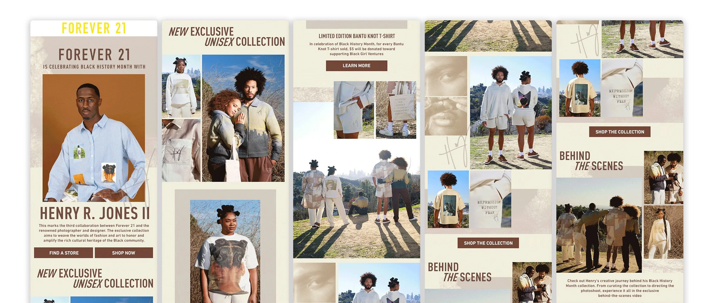 Digital marketing graphics & art direction for FOREVER21’s 2024 Black History Month collection, created in collaboration with Los Angeles-based artist Henry R. Jones II.